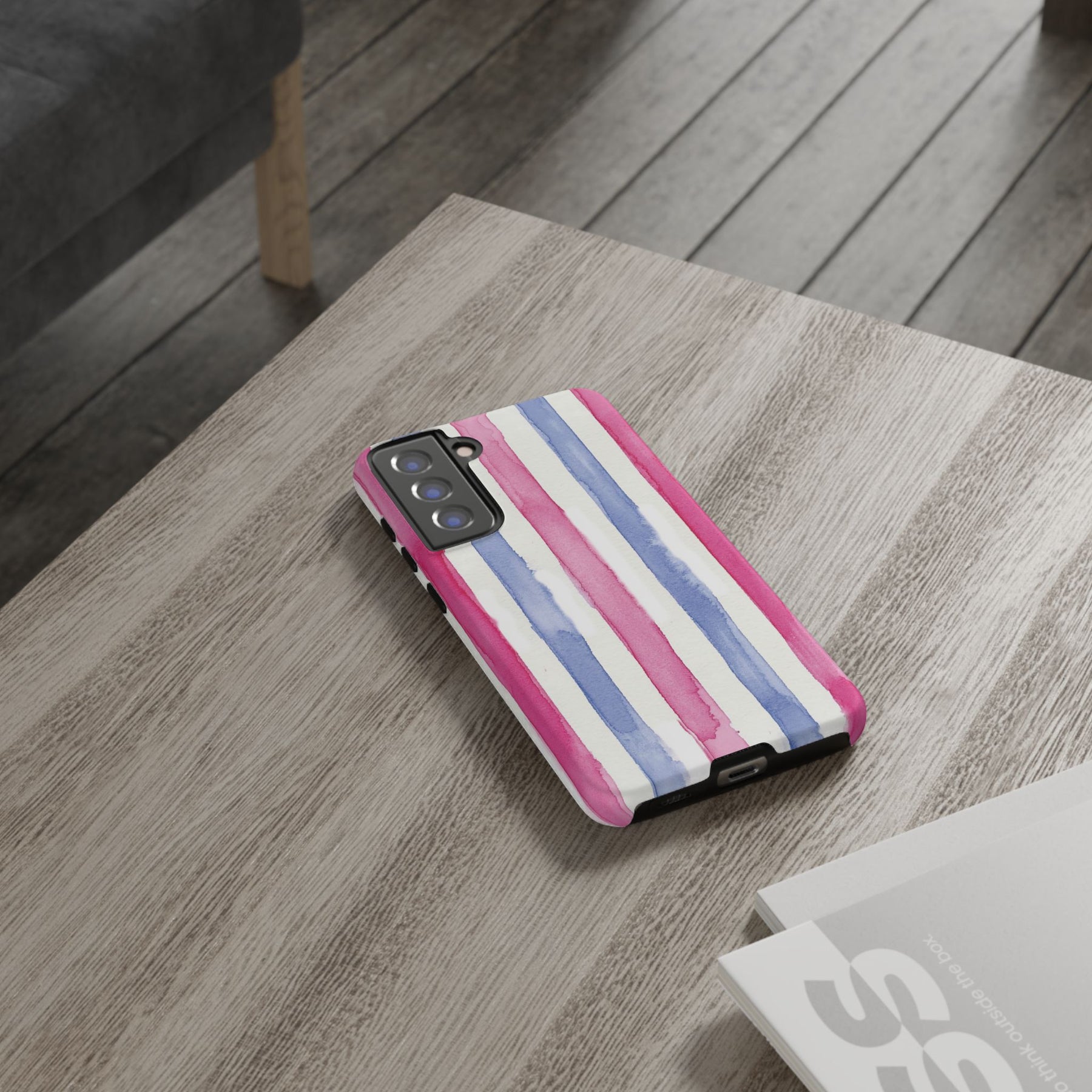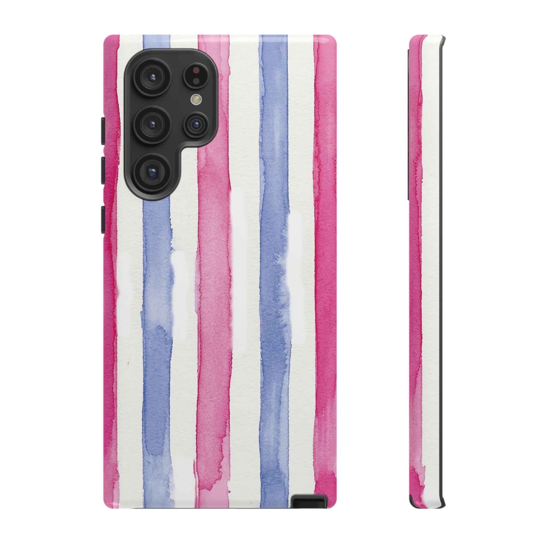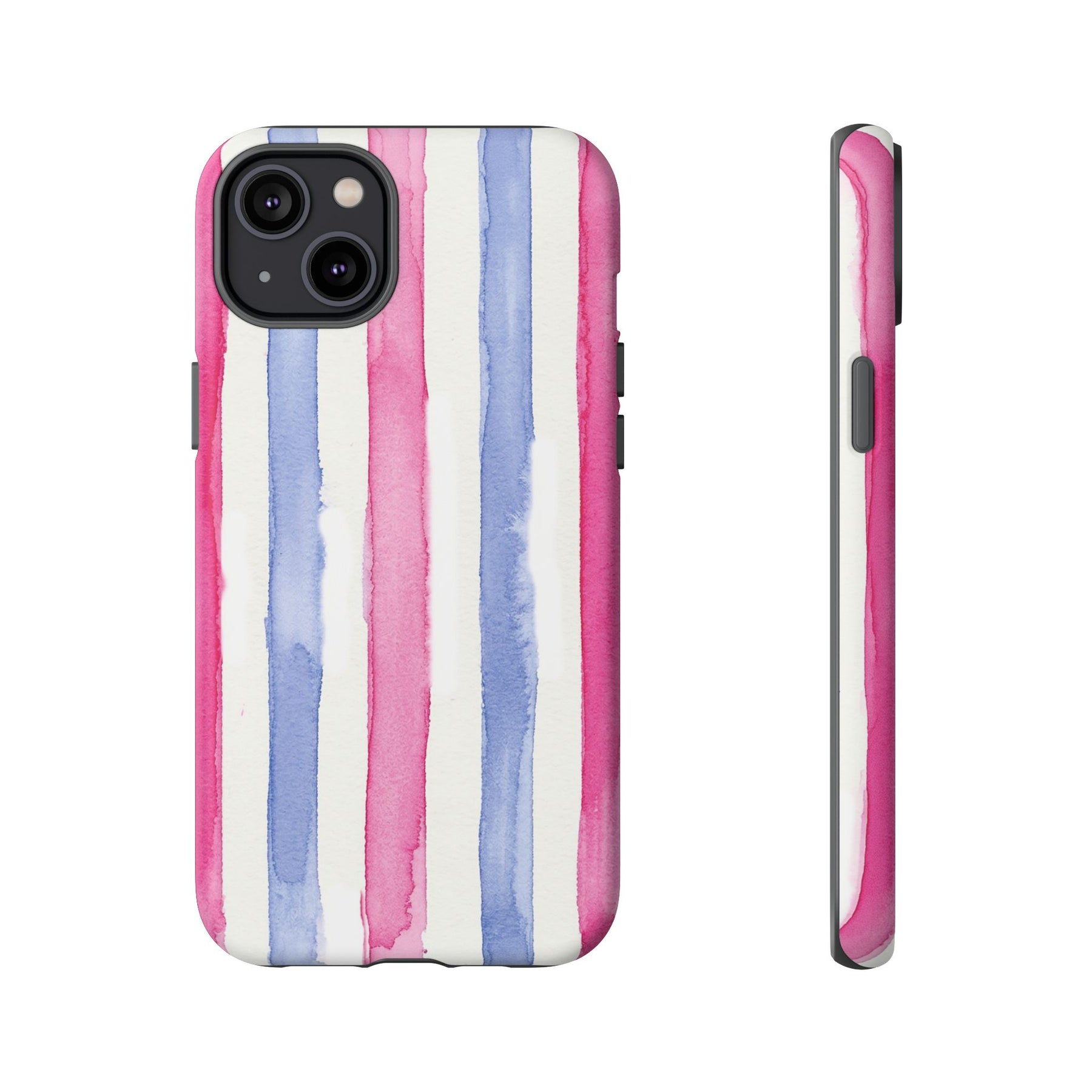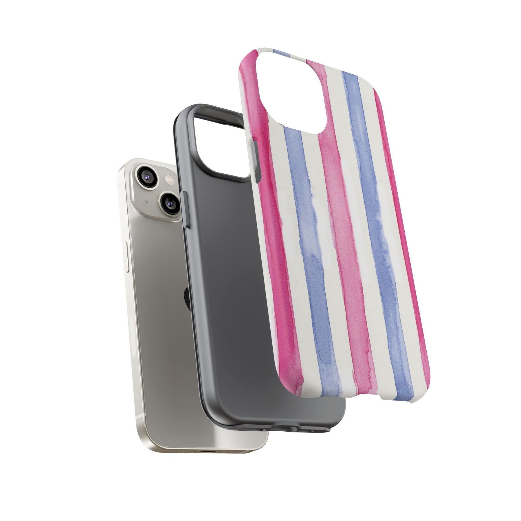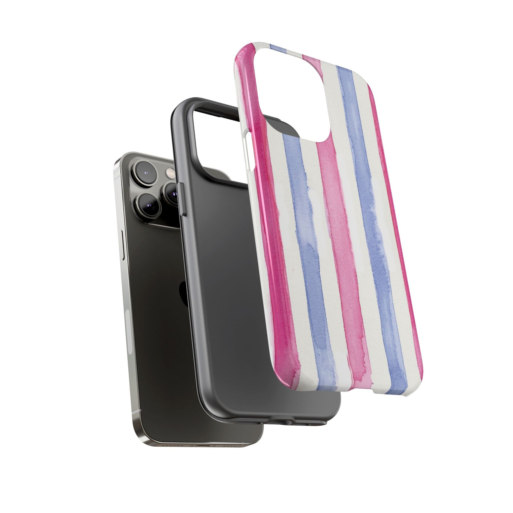 Tough Cute Pink Blue Stripes Phone Case, for IPhone 17 Pro Max | Iphone 17 Air, Iphone 16, IPhone 15, 14 13 12, Samsung Galaxy S26, S25, S24, S23 2 Layer Protection