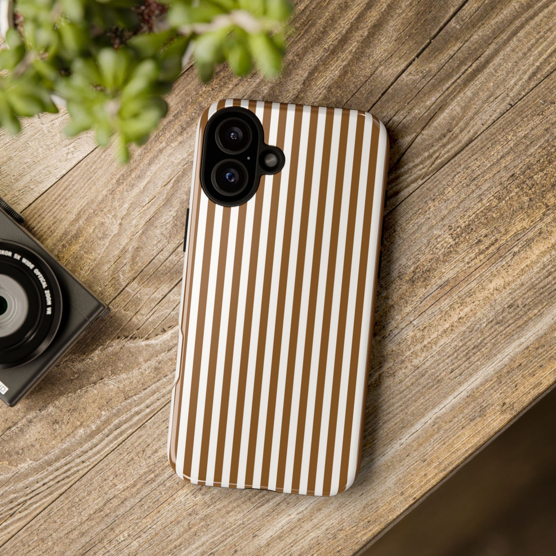 Tough Premium Mocca Brown Stripes Phone Case Gift for Her - For Apple iPhone 16 Pro Max 16e iPhone 15 Pro iPhone Iphone 14 Plus 13 Pro 12 SE XR